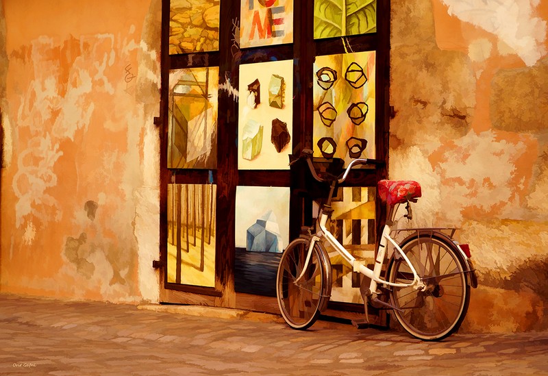 מול בית הקפה, מסדרת תמונות האופניים של אורית גפני.